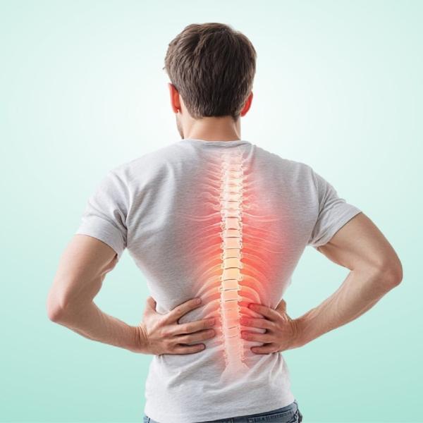 Lower back pain due to disc issues, muscle strain, or sedentary lifestyle managed with strengthening and spinal rehab.